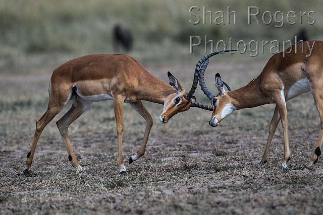 Impala males sparring (Aepyceros melampus). Maasai Mara National Reserve, Kenya. July 2015.