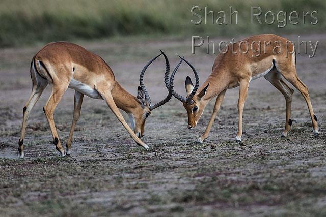 Impala males sparring (Aepyceros melampus). Maasai Mara National Reserve, Kenya. July 2015.
