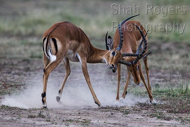Impala males sparring (Aepyceros melampus). Maasai Mara National Reserve, Kenya. July 2015.