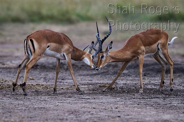 Impala males sparring (Aepyceros melampus). Maasai Mara National Reserve, Kenya. July 2015.