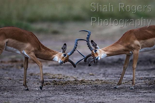 Impala males sparring (Aepyceros melampus). Maasai Mara National Reserve, Kenya. July 2015.