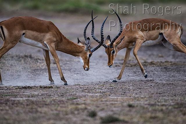 Impala males sparring (Aepyceros melampus). Maasai Mara National Reserve, Kenya. July 2015.