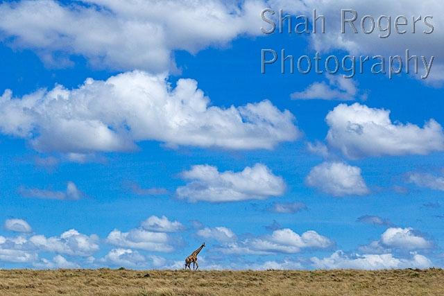 Maasai giraffe walking (Giraffa camelopardalis tippelskirchi). Maasai Mara National Reserve, Kenya. November 2016.