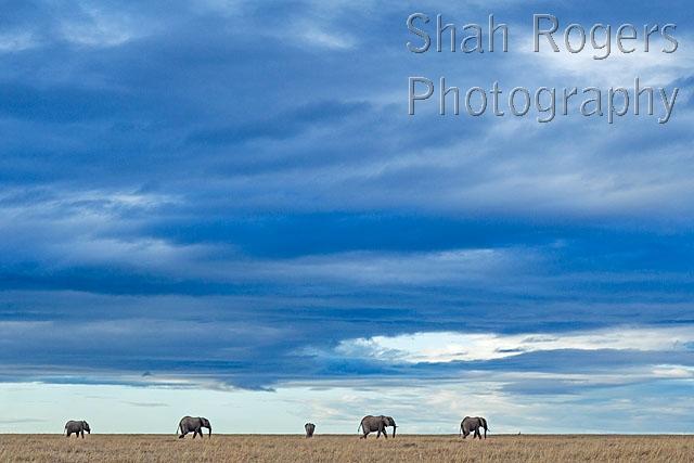 African elephant herd on the move(Loxodonta africana). Maasai Mara National Reserve, Kenya. November 2016.