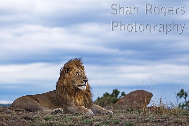 Lion male resting (Panthera leo). Maasai Mara National Reserve, Kenya. November 2016.