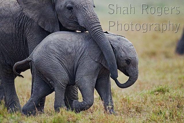 African elephant babies playing (Loxodonta africana). Maasai Mara National Reserve, Kenya. July 2017.