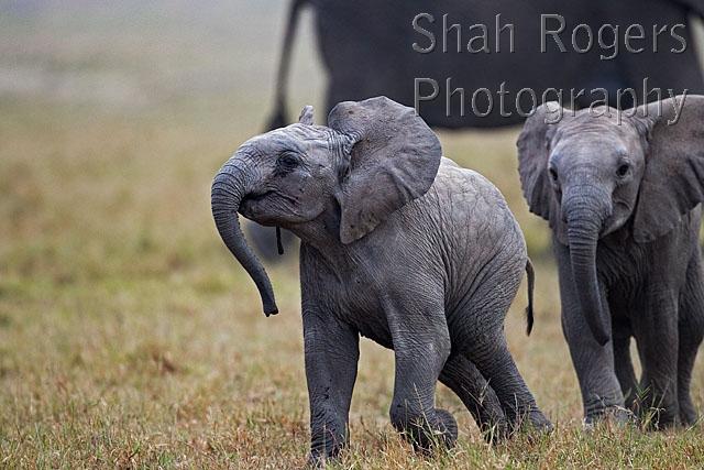 African elephant babies playing (Loxodonta africana). Maasai Mara National Reserve, Kenya. July 2017.