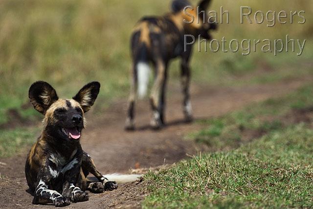 African wild dogs resting (Lycaon pictus). Maasai Mara National Reserve, Kenya. August 2017.