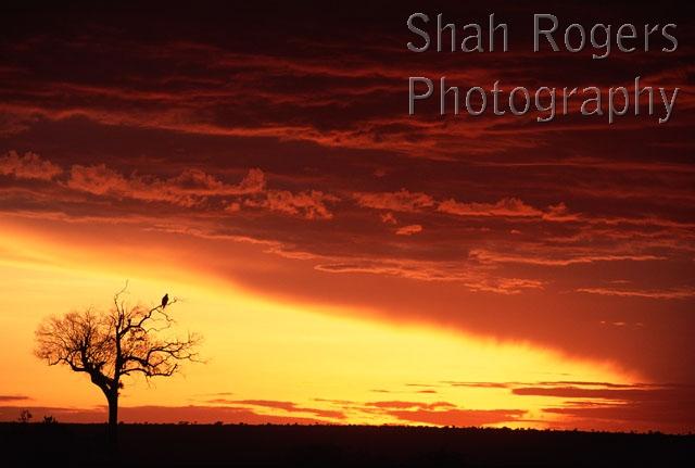 Vultures roosting in tree at sunset, Maasai Mara National Reserve, Kenya
