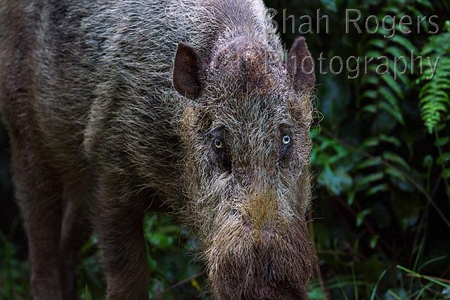 Bearded pig portrait (Sus barbatus). Bako National Park, Sarawak, Borneo, Malaysia. Apr 2010.
