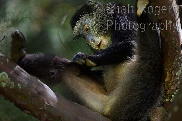 Blue monkey female known as 'Kipper' self-grooming (Cercopithecus mitis stuhlmanni). Kakamega Forest South, Western Province, Kenya. Nov 2009.