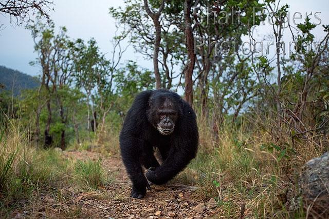 Eastern chimpanzee male 'Titan' aged 20 years walking (Pan troglodytes schweinfurtheii). Gombe National Park, Tanzania. September 2014.