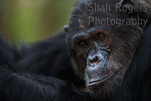 Eastern chimpanzee alpha male 'Ferdinand' aged 22 years portrait (Pan troglodytes schweinfurtheii). Gombe National Park, Tanzania. September 2014.