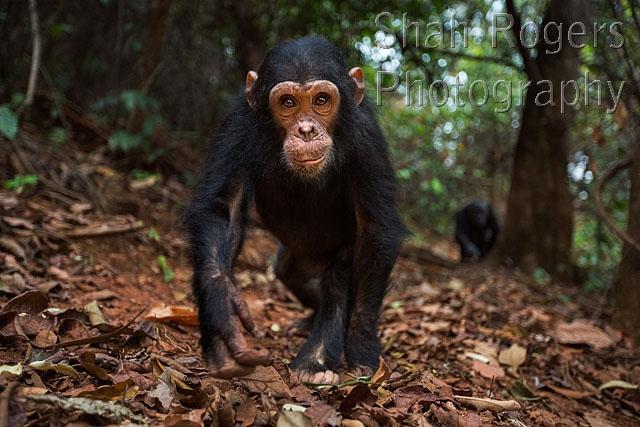 Eastern chimpanzee infant male 'Fifty' aged 4 years walking along a trail (Pan troglodytes schweinfurtheii). Gombe National Park, Tanzania. September 2014.