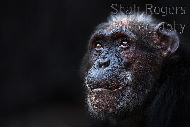 Eastern chimpanzee female 'Sparrow' aged 56 years portrait (Pan troglodytes schweinfurtheii). Gombe National Park, Tanzania. September 2014.