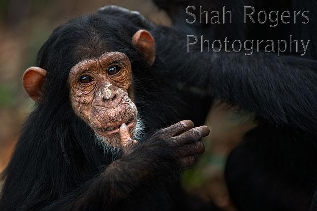 Eastern chimpanzee infant male 'Ipo' aged 5 years being groomed by his mother (Pan troglodytes schweinfurtheii). Gombe National Park, Tanzania. September 2014.