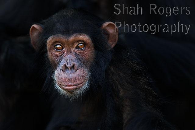 Eastern chimpanzee juvenile male 'Siri' aged 7 years being groomed - portrait (Pan troglodytes schweinfurtheii). Gombe National Park, Tanzania. September 2014.