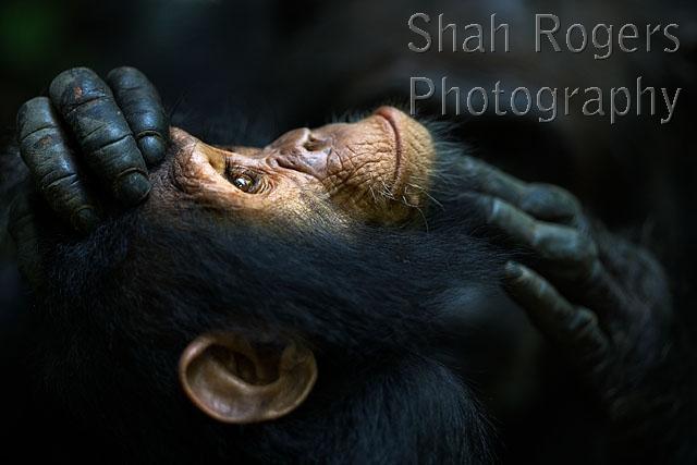 Eastern chimpanzee infant male 'Gizmo' aged 4 years being groomed by his mother (Pan troglodytes schweinfurtheii). Gombe National Park, Tanzania. May 2014.